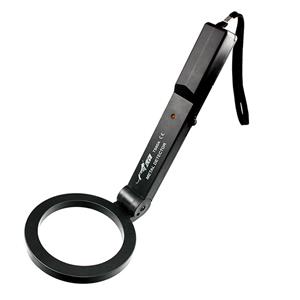 Handheld Metal Detector Wand that operates on a 1-piece 9V, 6F22 battery or equivalent.